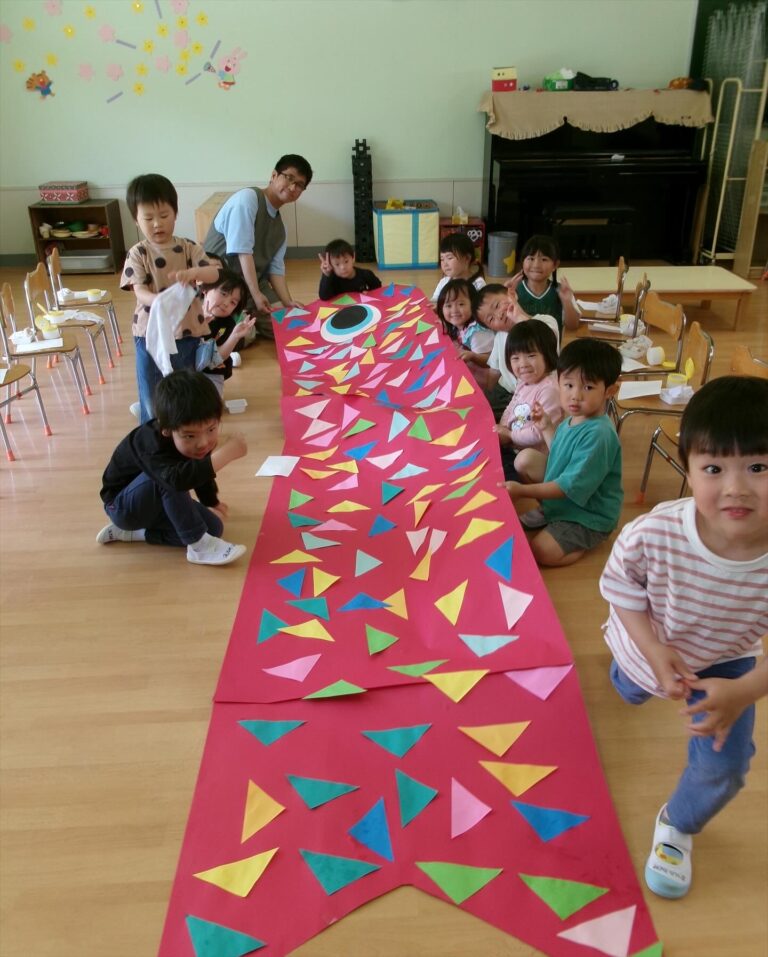 年中さんのお部屋にも年中さんが作ったおおきなこいのぼり!
